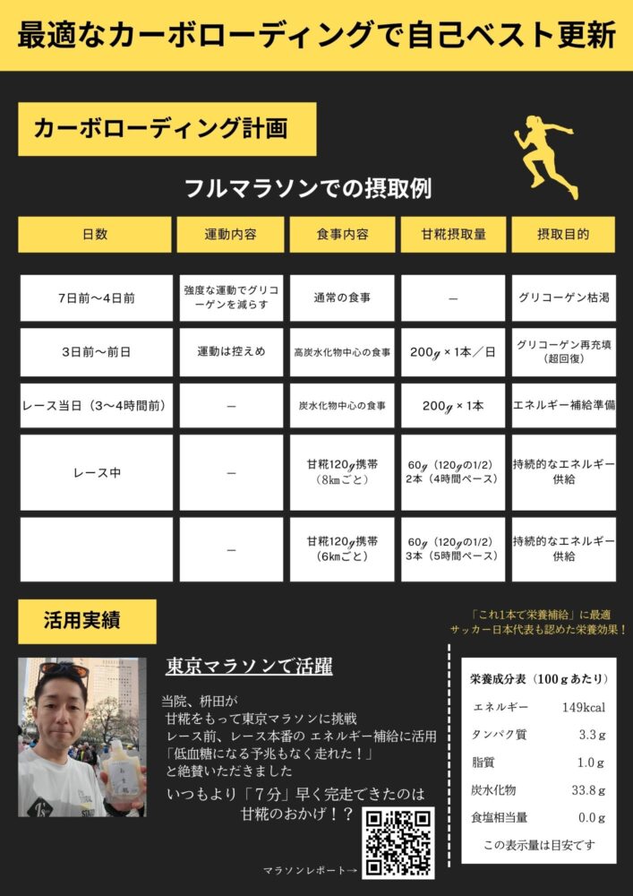 実際にカーボローディングに甘糀を使って
